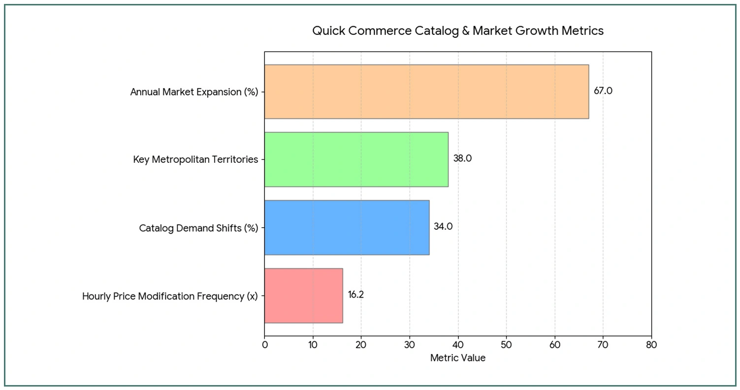 - Demand-Based Inventory Control: Analysis reveals 34% catalog fluctuation through responsive adjustments, where quick commerce optimization achieves 94.7% availability and 24.3x inventory rotation for enhanced customer satisfaction.