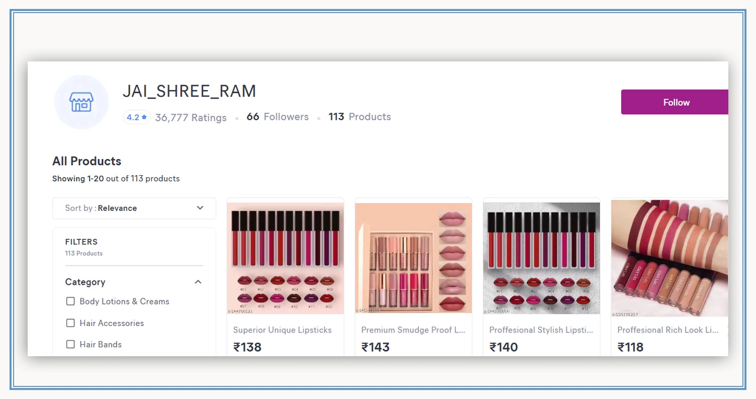 Meesho’s marketplace structure presents a distinct seller environment shaped by reseller networks, price sensitivity, and rapid product turnover. Scraped datasets indicate that sellers with focused assortments and faster fulfillment cycles outperform larger catalogs with inconsistent performance. Sellers maintaining limited but optimized SKU sets often achieve higher order velocity and better reseller engagement.